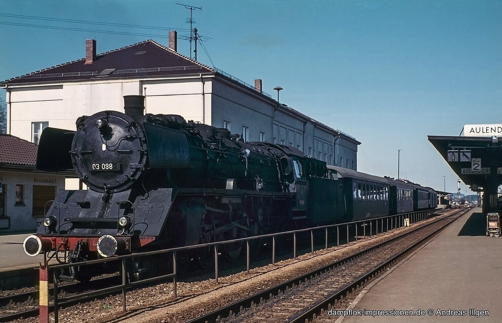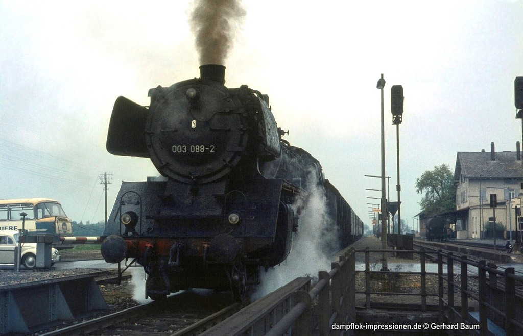 Uns persönlich hatte es diese Baureihe von Anfang angetan. Und noch heute können sich die damals 13- bzw. 15-jährigen Jungs bestens daran erinnern, als sich ihnen im Juli 1967 im Ulmer Hauptbahnhof die erste 03 langsam hinter einem Schnellzugwagen heranrollend im frühen Morgenlicht präsentierte. So viel Herzklopfen und überschwengliche Begeisterung können Erwachsene gar nicht haben bzw. empfinden. Die 03 wurde schon mit dieser ersten Begegnung zu "unserer" Lok. Genauso unvergessen ist die Rückfahrt von einer Exkursion nach Crailsheim wenige Jahre später mit einem von einer 03 geführten Nahverkehrszug. Jede der Anfahrten in den zahlreichen Haltestationen wurde aus dem geöffneten Fenster im Wagen hinter der Lok hautnah mit Augen und Ohren mitererlebt. In die beginnende Dämmerung und dann in die Dunkelheit jagten durch den Schornstein der Lok glühende Partikel in den abendlichen Himmel. Was für ein Feuerwerk! Die Partikel freilich, kratzend und schmerzend, hatten sich bis zum Verlassen des Zuges in Sontheim-Brenz auch in unseren gierig aufgerissenen Augen niedergelassen. So verlangt die eine oder andere Begeisterung eben auch ihren Preis.